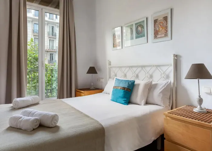 The 50 m² Urgell Apartment Barcelona features views of the city and is situated around a 20-minute walk from the Arenas de Barcelona shopping center.